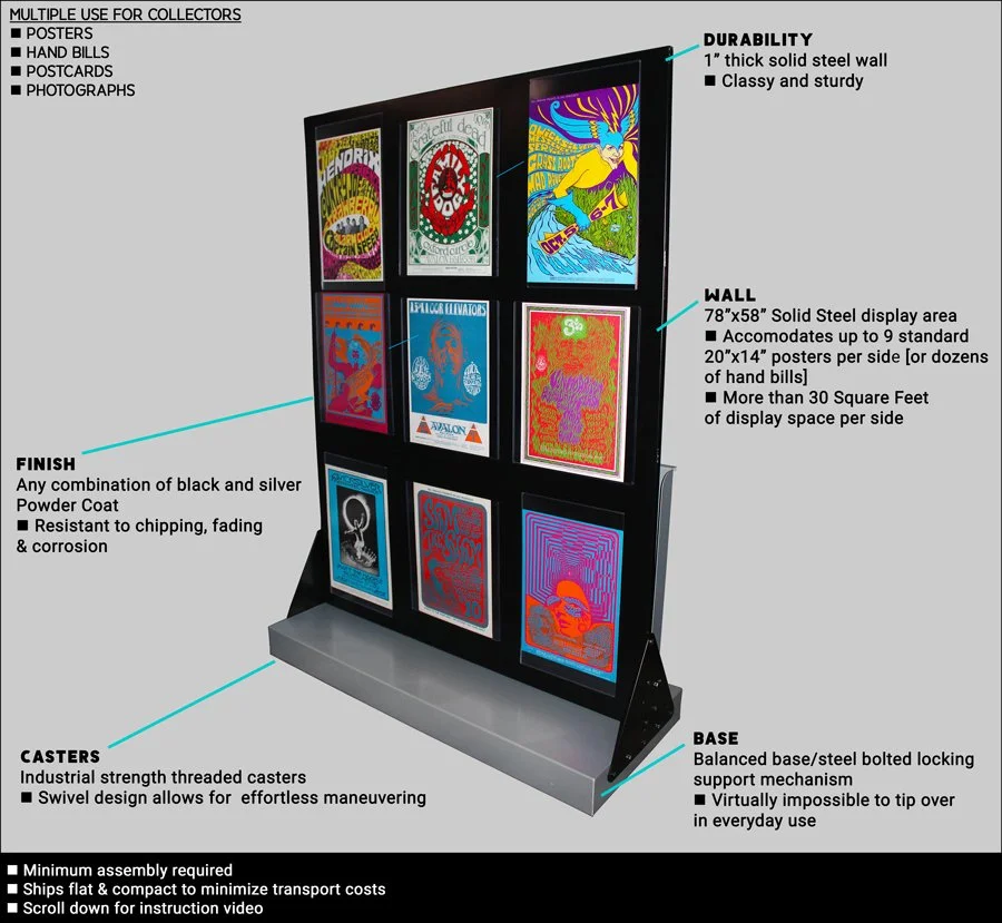 Made in the USA with 100% steel and built to last forever, our dynamic attention-commanding poster stands are a far cry from the flimsy, boring "turn-the-page" alternatives which permeate the market today.